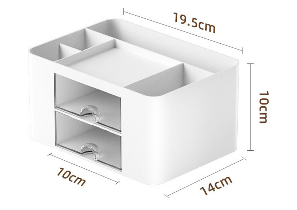 Dieser weiße Schreibtisch-Organizer ist die perfekte Lösung, um Ihren Arbeitsplatz organisiert zu halten. Mit fünf Fächern unterschiedlicher Größe und zwei praktischen Schubladen bietet dieser Organizer viel Platz für all Ihre Büromaterialien. Es besteht aus strapazierfähigem Kunststoff und ist sowohl leicht als auch robust. Organisieren Sie Stifte, Notizbücher, Haftnotizen und andere kleine Gegenstände ganz einfach. Mit diesem Schreibtisch-Organizer können Sie eine strukturierte Arbeitsumgebung schaffen, die die Produktivität fördert. Bringen Sie mit diesem praktischen Accessoire Ordnung und Stil auf Ihren Schreibtisch.