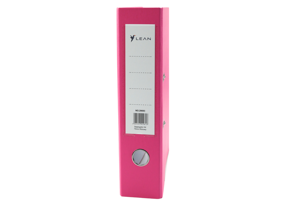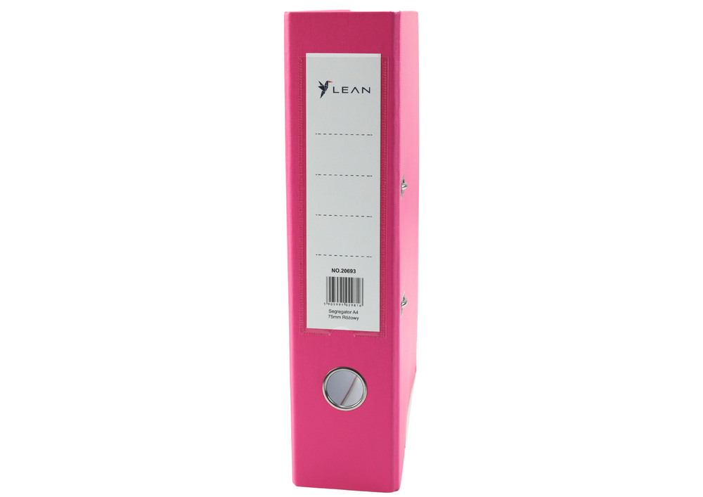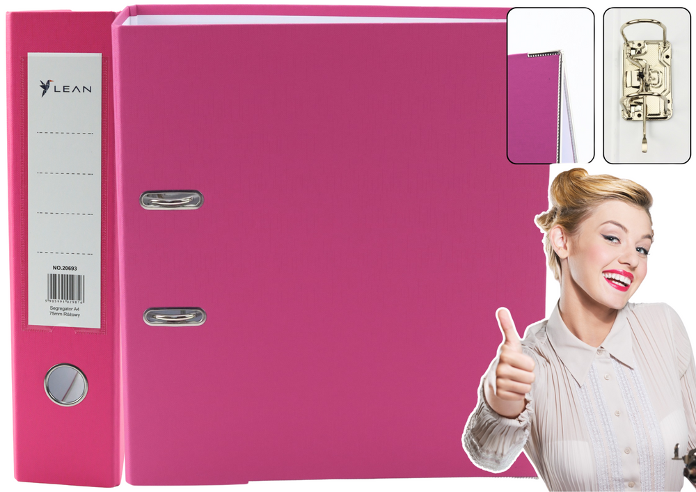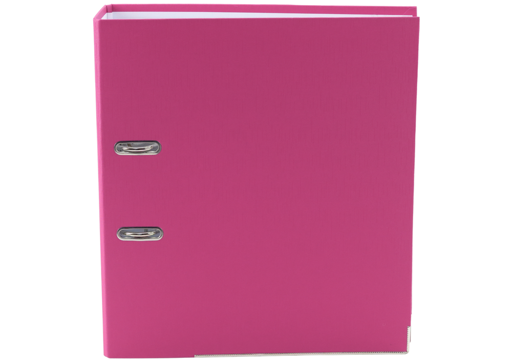 Dokumentenmappe A4/75 mm mit Hebelmechanik in Pink ist ideal für den Einsatz im Büro und zu Hause. Dieser A4-Ordner mit 75 mm Rücken bietet Platz für bis zu 500 Blatt. Hergestellt aus strapazierfähigem 2-mm-Karton (1200 g/m²) mit einem Verstärkungsstreifen an der Unterseite für zusätzliche Stabilität. Der vernickelte Hebelmechanismus sorgt für ein leichtes Öffnen und Schließen. Mit den Maßen 75 x 320 x 285 mm passt dieser Ordner perfekt ins Regal.