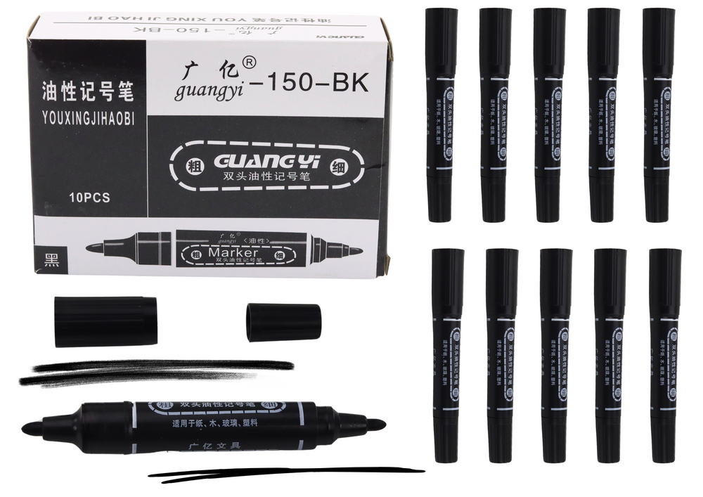 Dieses doppelseitige, wasserfeste Marker-Set enthält 10 schwarze Marker, perfekt für dauerhafte Markierungen auf Papier, Kunststoff, Metall und Glas. Die Marker liefern scharfe, wasserfeste Drucke und sind daher ideal für kreative und praktische Anwendungen. Dank ihrer handlichen, runden Form liegen sie gut in der Hand und eignen sich perfekt für den täglichen Gebrauch. Verleihen Sie all Ihren Projekten mit diesen vielseitigen Markern einen Hauch von Professionalität.