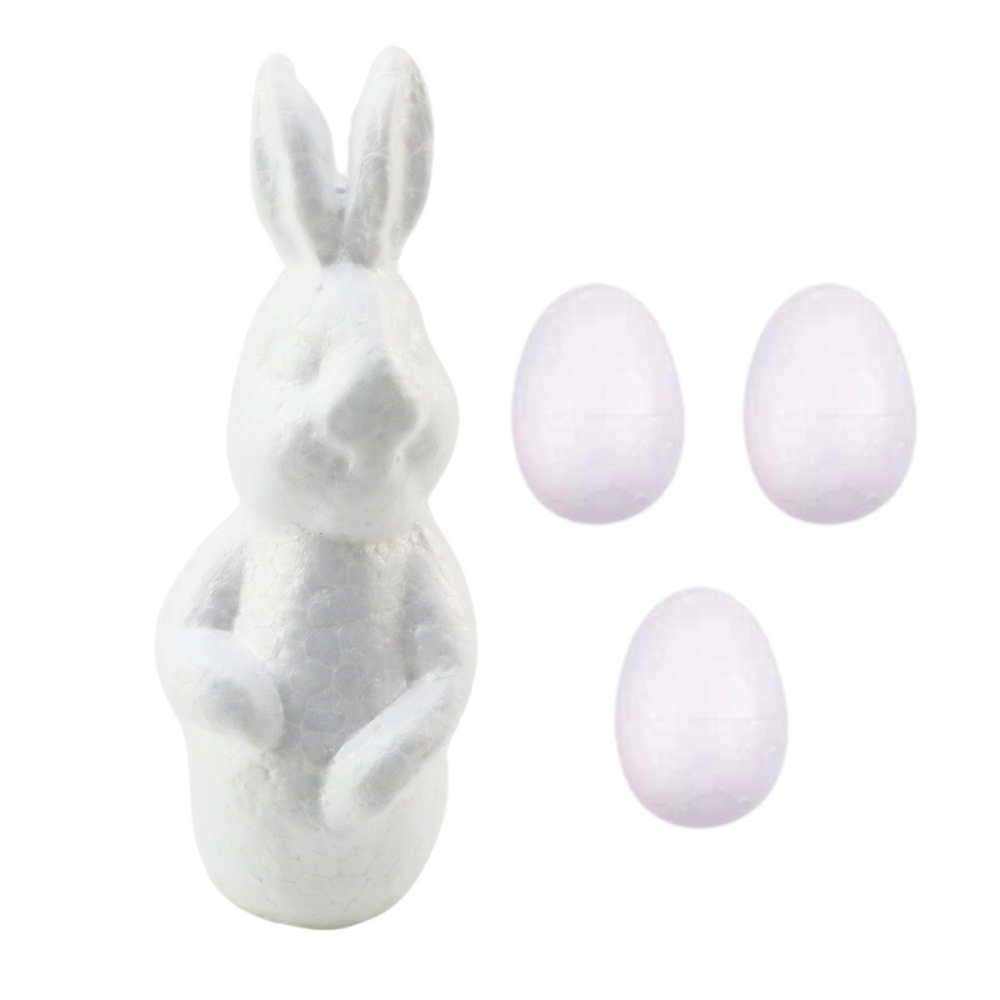 Mit dem Hasen Styropor Deko Malset 3 Eier bemalen können Kinder zu Ostern kreativ werden. Dieses Set enthält drei Styropor-Eier und einen Styropor-Hasen sowie vier Malfarben in leuchtenden Farbtönen und einen Pinsel. Ideal, um die künstlerischen Fähigkeiten von Kindern zu entwickeln und eigene Osterdekorationen zu gestalten. Lassen Sie Ihrer Fantasie freien Lauf und schaffen Sie einzigartige Kunstwerke, die perfekt für die Feiertage sind. Geeignet für Kinder und ein tolles Geschenk zu Ostern.