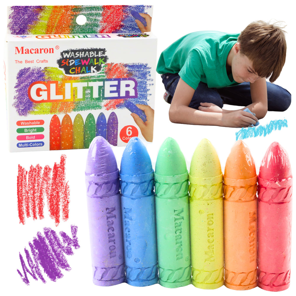 Glitzernde Tafelkreide für den Bürgersteig, 6er-Set. Dieses Set enthält 6 glitzernde Kreiden in leuchtenden Farben: Rot, Orange, Gelb, Grün, Blau und Lila. Perfekt zum Zeichnen auf Gehwegen, Tafeln oder Papier. Die Buntstifte sind ungiftig, kindersicher und leicht zu reinigen. Fördert Kreativität und Entwicklung. Machen Sie die Welt mit diesen wunderschönen Buntstiften ein bisschen bunter!