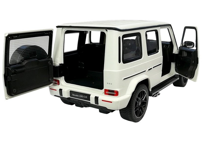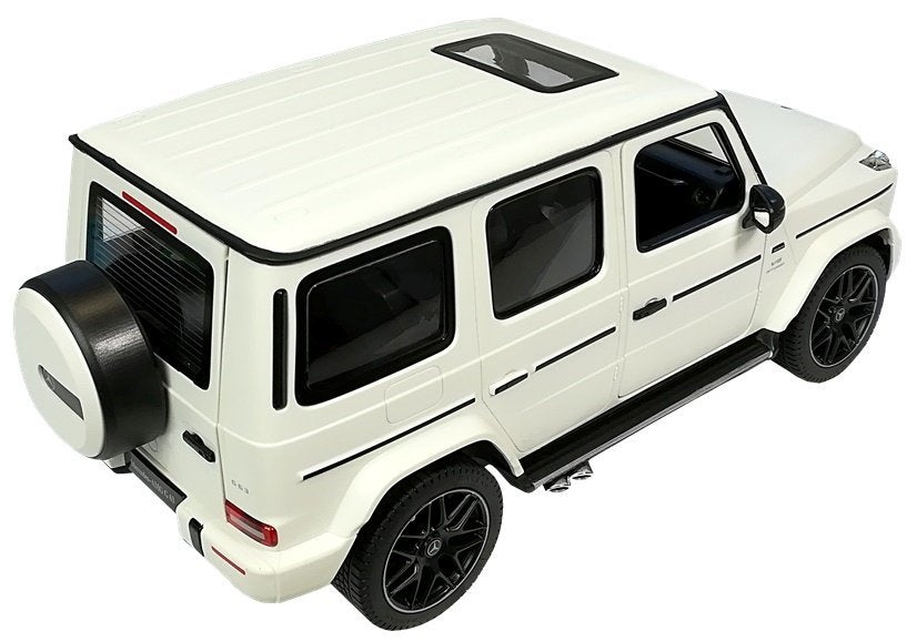 Entdecken Sie das aufregende R/C-Auto Mercedes G63 von Rastar in stylischem Weiß. Dieses ferngesteuerte Auto bietet ein realistisches Fahrerlebnis mit detaillierter Verarbeitung, einschließlich einer luxuriösen Innenausstattung und einer authentischen Karosserie. Mit seinem leistungsstarken Motor und dem sanften Fahrverhalten eignet sich der G63 perfekt für den Einsatz im Innen- und Außenbereich. Die Fernbedienung ist einfach zu bedienen und bereitet sowohl Kindern als auch Erwachsenen großen Spaß am Fahren. Perfekt als Geschenk oder für Sammler. Holen Sie sich mit diesem einzigartigen R/C-Auto die Spannung eines Mercedes G63 in Ihr Wohnzimmer oder Ihren Garten.