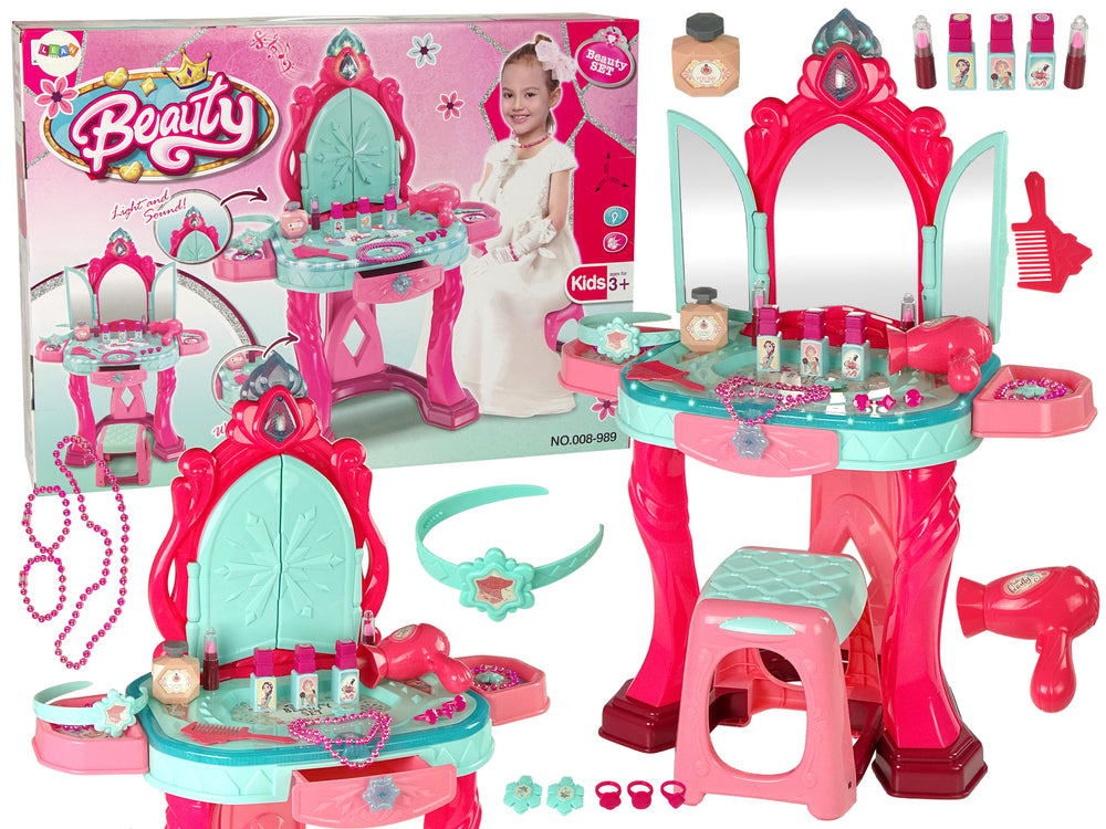 Das Beautyset WC mit Spiegel, Licht und Sound in stylischem Pink ist perfekt für junge Mädchen, die Schönheit und Pflege lieben. Dieses Set umfasst einen praktischen Schminktisch mit einem schönen beleuchteten Spiegel, sodass Sie immer für die beste Beleuchtung sorgen können. Die integrierten Soundeffekte verleihen dem Spiel eine spielerische Dimension und machen es zu einem noch angenehmeren Erlebnis. Darüber hinaus gibt es verschiedene Accessoires wie Schmuck, Pinsel und Make-up, die die Kreativität anregen. Ein ideales Geschenk zum Geburtstag oder einfach, um Ihr Mädchen zu verwöhnen und ihre Fantasie anzuregen.