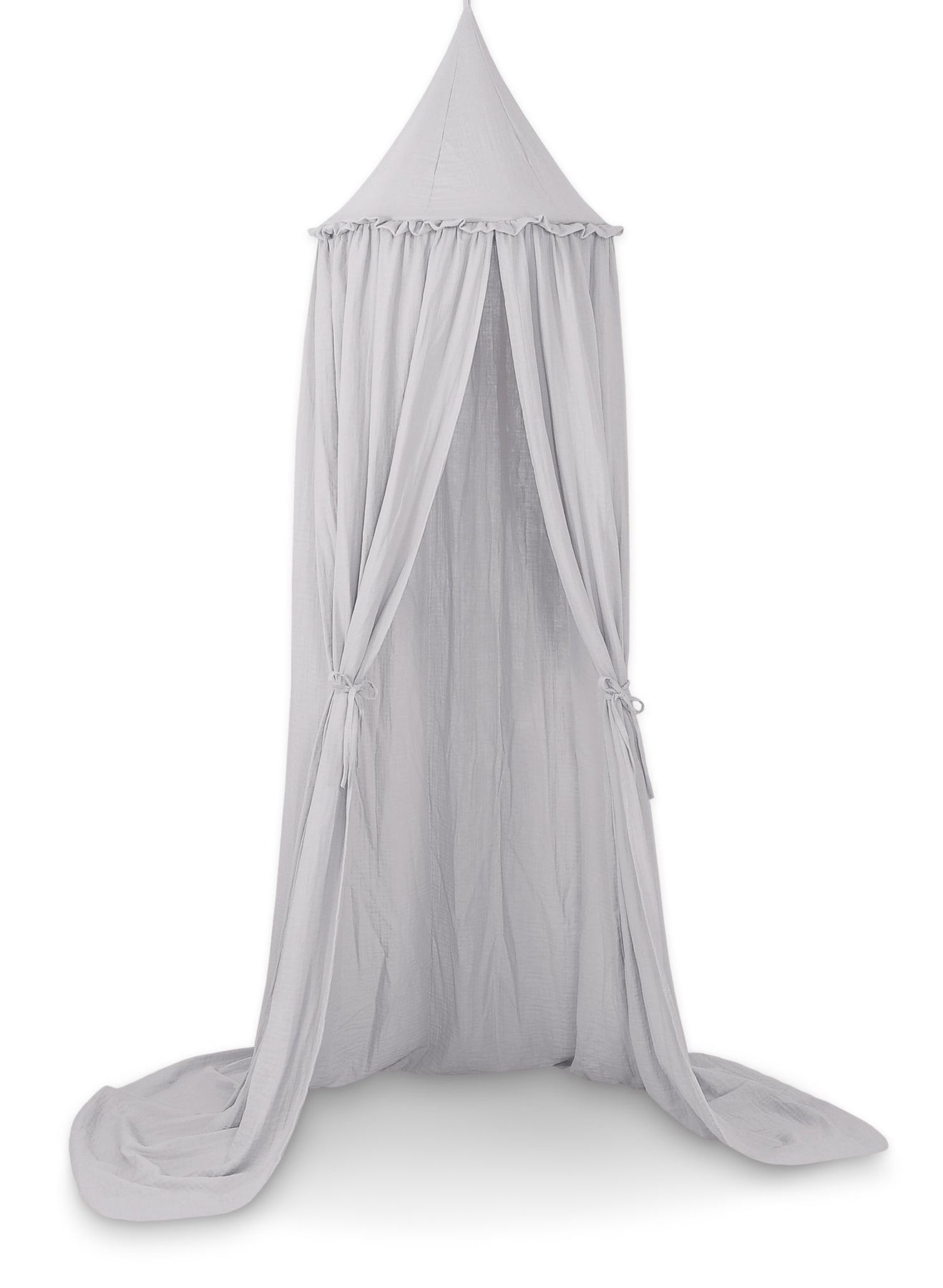 Musselin-Hängehimmel mit Rüsche - grau