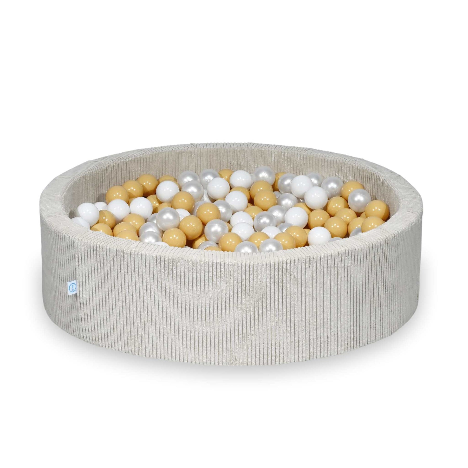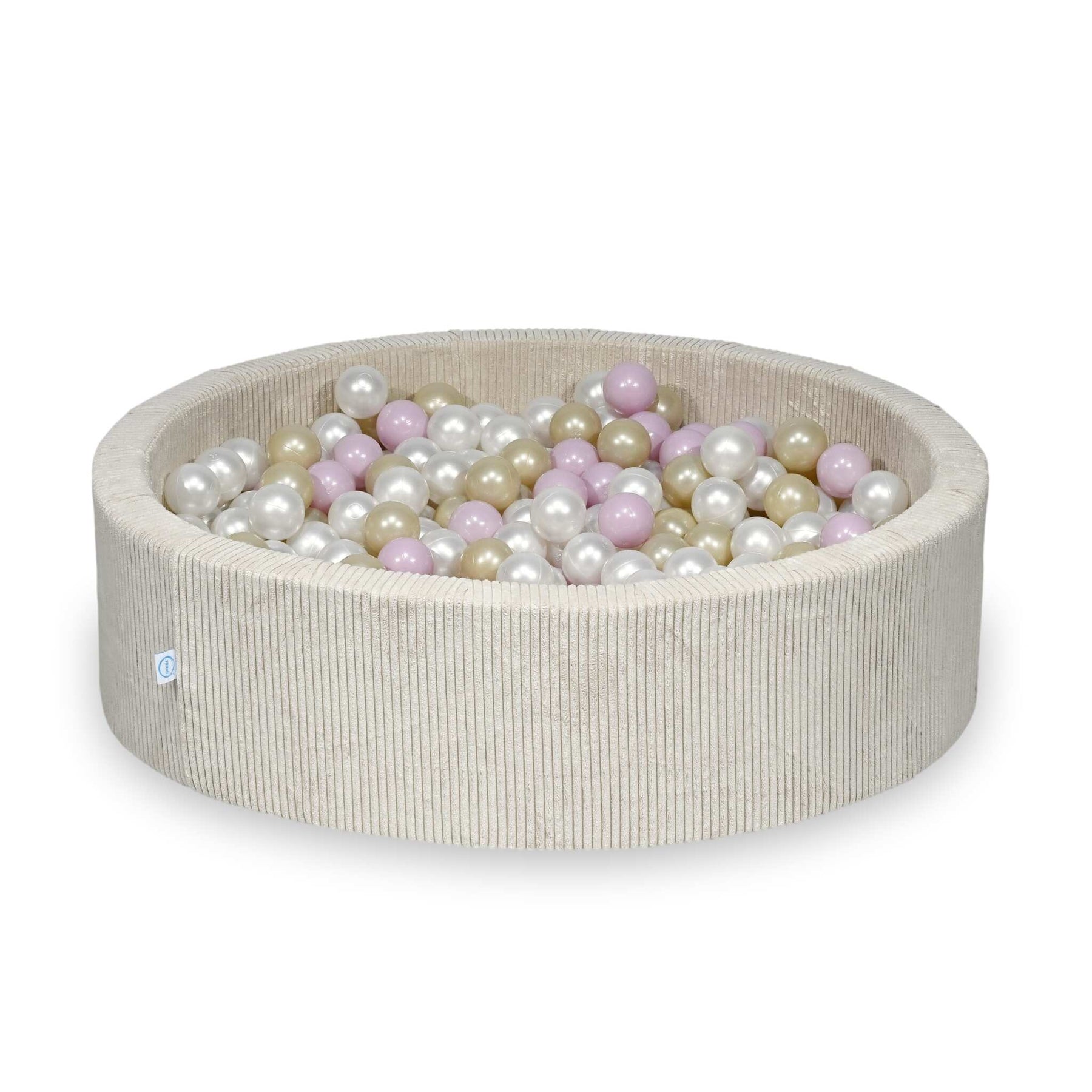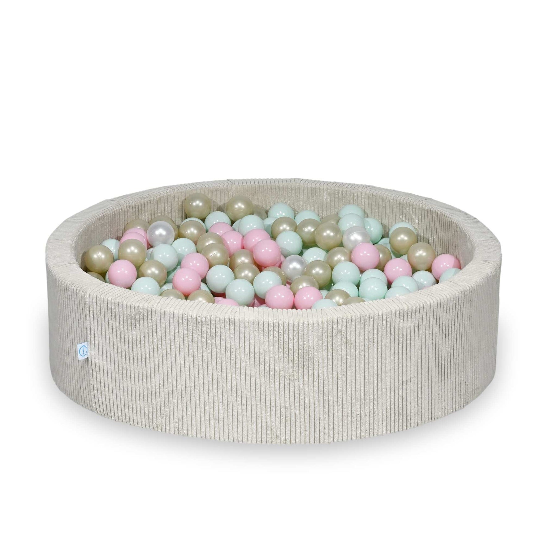 Een stijlvolle, zachte ballenbak van ribfluweel — perfect voor urenlang speelplezier en het stimuleren van motoriek en zintuigen. Dankzij de stevige schuimrand en afneembare hoes is de ballenbak zowel veilig als praktisch in gebruik.