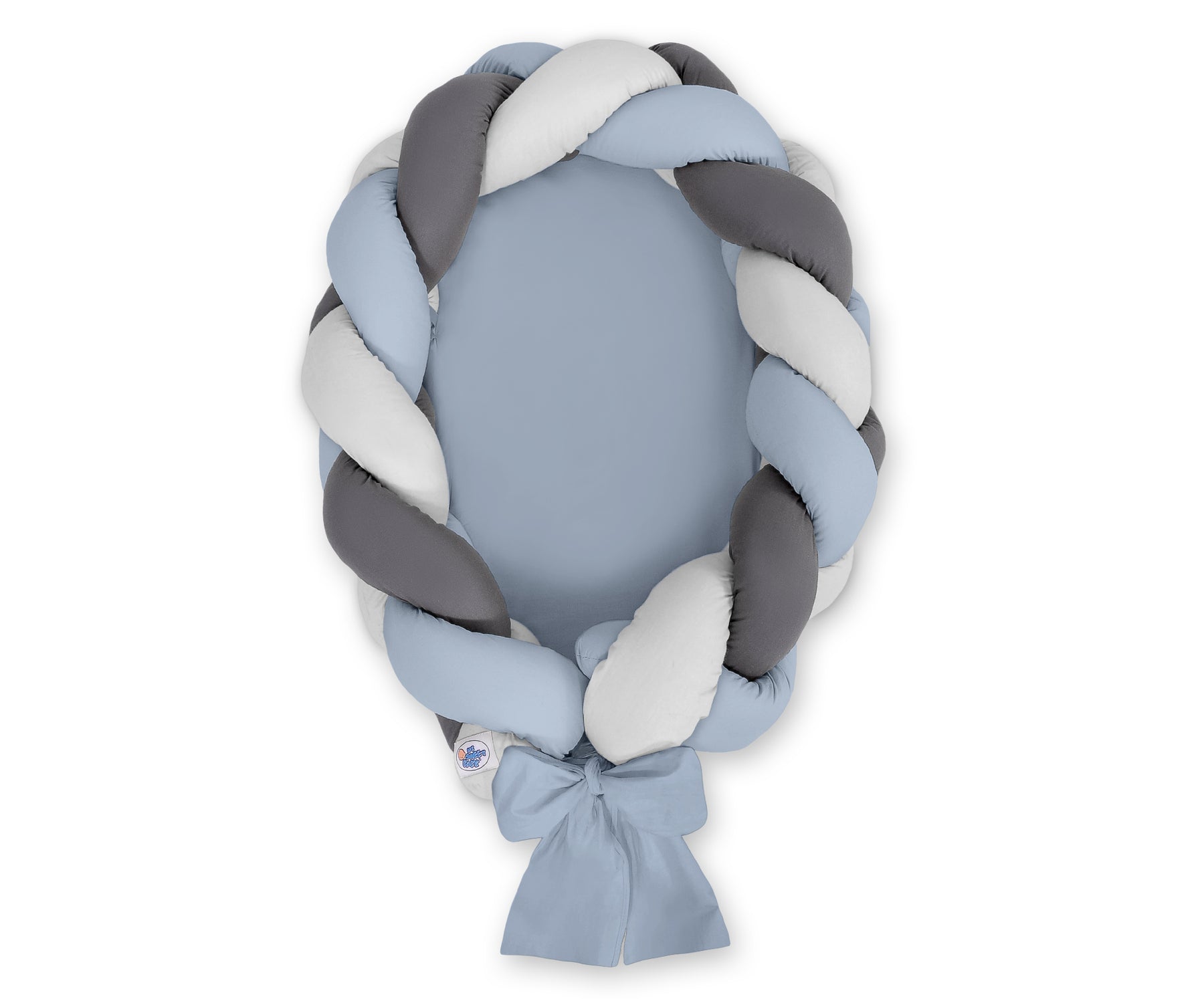 Geflochtenes Babynestchen 2 in 1 - Pastellblau - Grau - Anthrazit