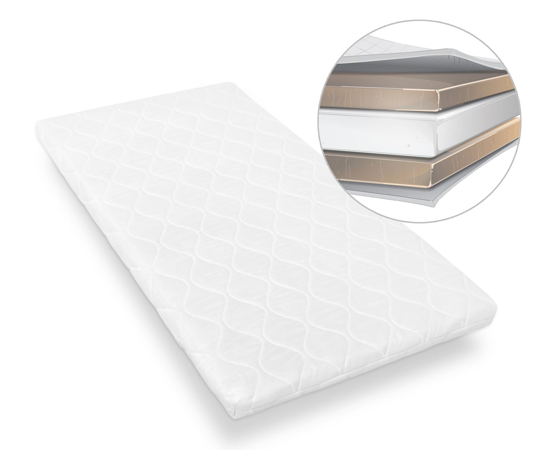 Die Kindermatratze sorgt für die richtige Position des Kindes im Schlaf. Es handelt sich um eine Naturmatratze ohne Schadstoffe für Kleinkinder.