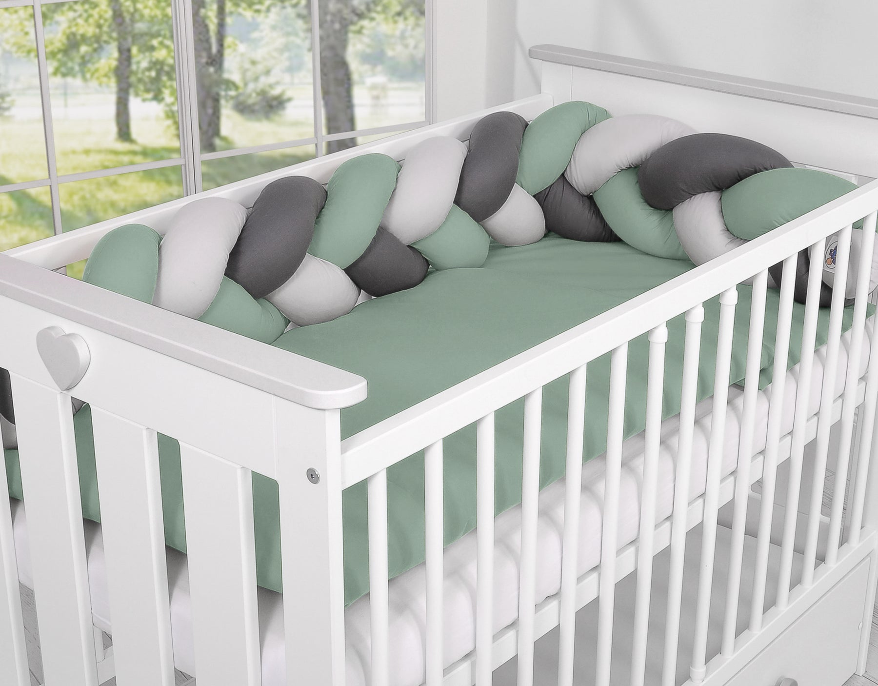Der Stoßfänger schützt die Hände und Füße Ihres Babys vor dem Einklemmen zwischen den Spindeln und schützt Kopf und Körper des Babys gegen Stöße gegen die Bettwände. Das Nestchen kann mit den mitgelieferten Baumwollschleifen an den Gitterstäben befestigt werden.