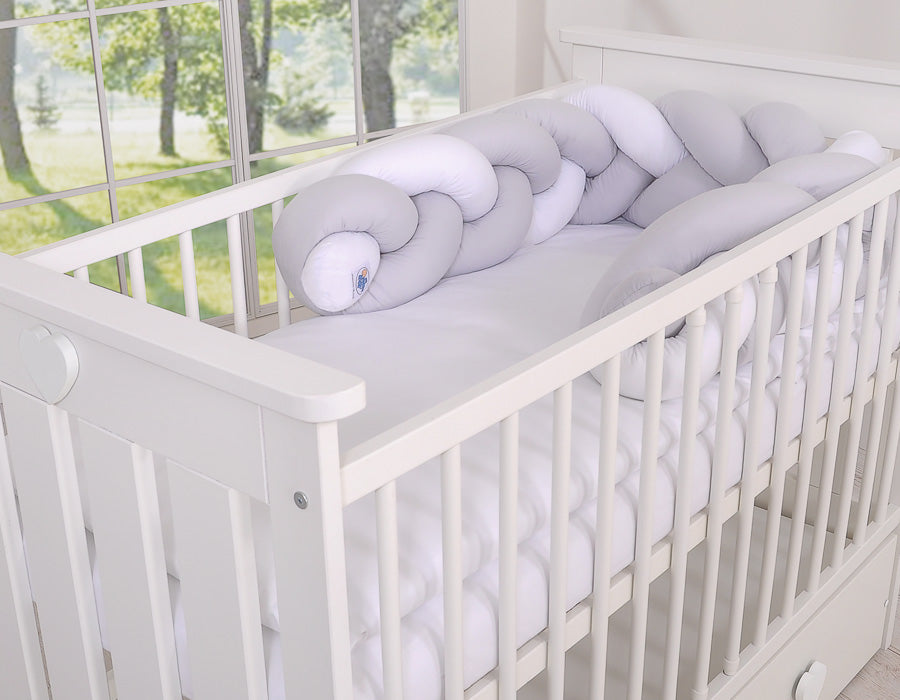 Der Stoßfänger schützt die Hände und Füße Ihres Babys vor dem Einklemmen zwischen den Spindeln und schützt Kopf und Körper des Babys gegen Stöße gegen die Bettwände. Das Nestchen kann mit den mitgelieferten Baumwollschleifen an den Gitterstäben befestigt werden.