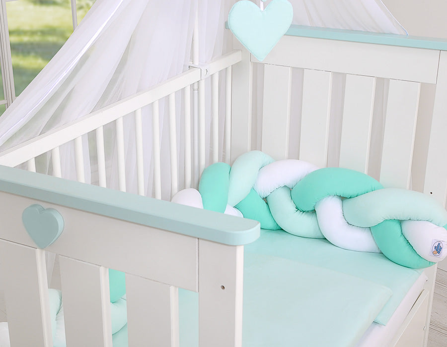 Der Stoßfänger schützt die Hände und Füße Ihres Babys vor dem Einklemmen zwischen den Spindeln und schützt Kopf und Körper des Babys gegen Stöße gegen die Bettwände. Das Nestchen kann mit den mitgelieferten Baumwollschleifen an den Gitterstäben befestigt werden.