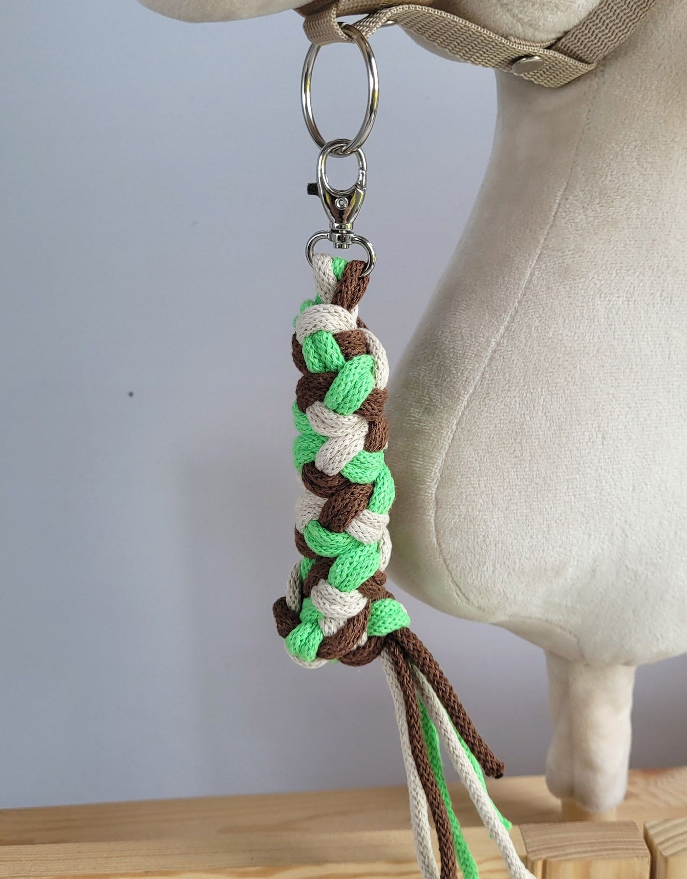 Hochwertige, handgefertigte weiche Kette für Steckenpferd. Die Halskette ist sorgfältig aus starker, doppelt gedrehter Baumwollkordel mit einem Durchmesser von 5 mm geflochten. Die Leine ist angenehm zu tragen, verursacht keine Scheuerstellen und ist antiallergisch. Der Karabiner ist aus silberfarbenem Metall gefertigt.