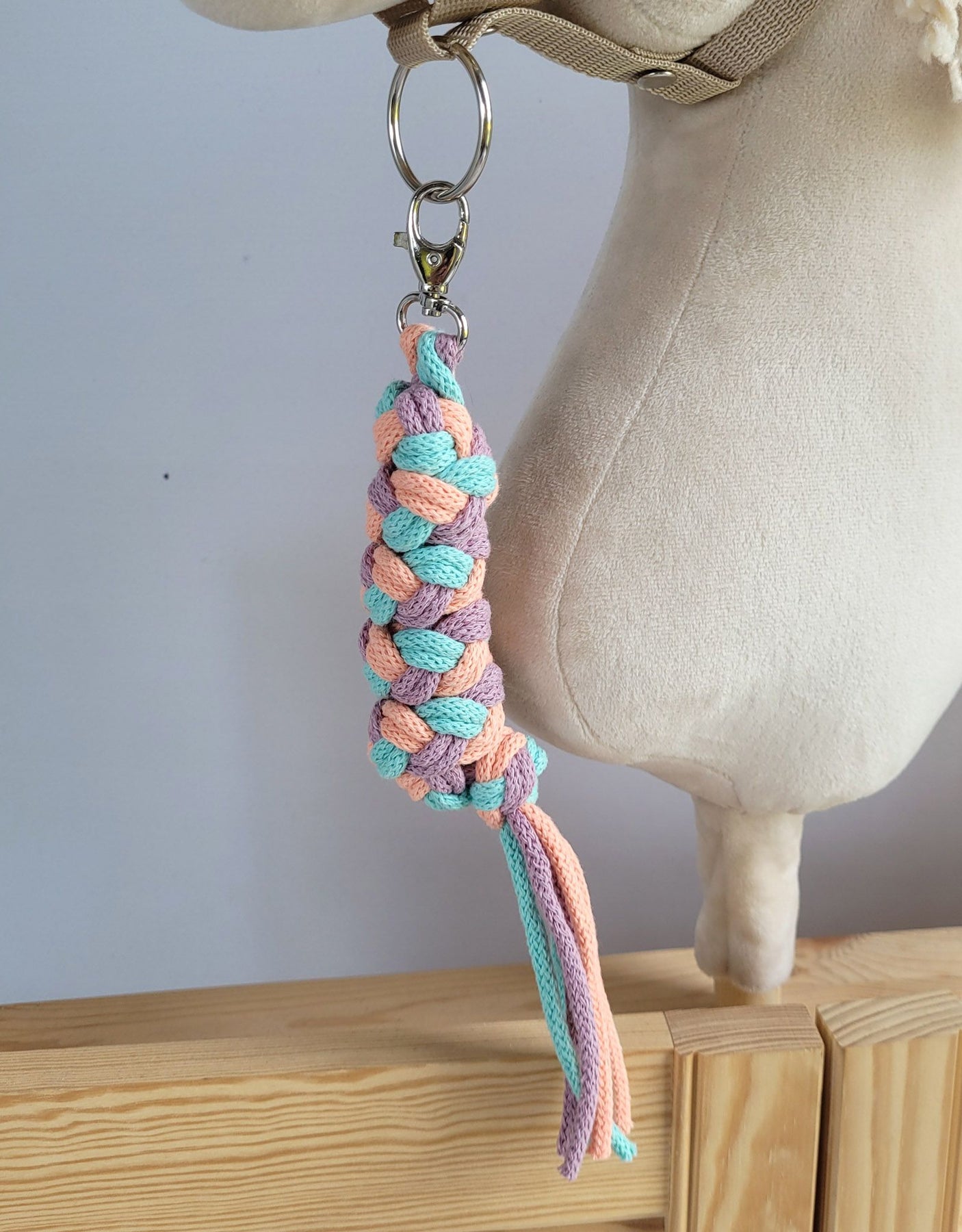 Hochwertige, handgefertigte weiche Kette für Steckenpferd. Die Halskette ist sorgfältig aus starker, doppelt gedrehter Baumwollkordel mit einem Durchmesser von 5 mm geflochten. Die Leine ist angenehm zu tragen, verursacht keine Scheuerstellen und ist antiallergisch. Der Karabiner ist aus silberfarbenem Metall gefertigt.