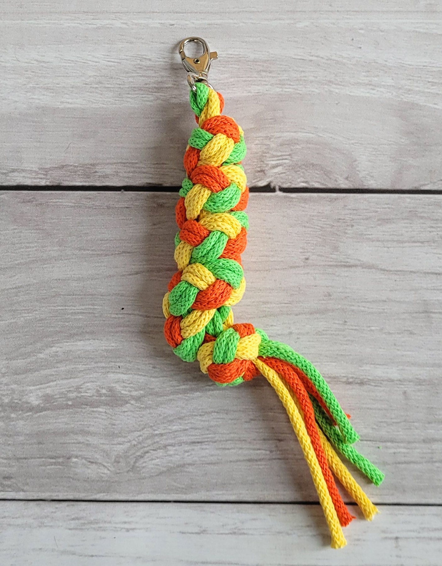 Anbindestrick für Hobbypferd aus Doppel - gelb/hellgrün/orange