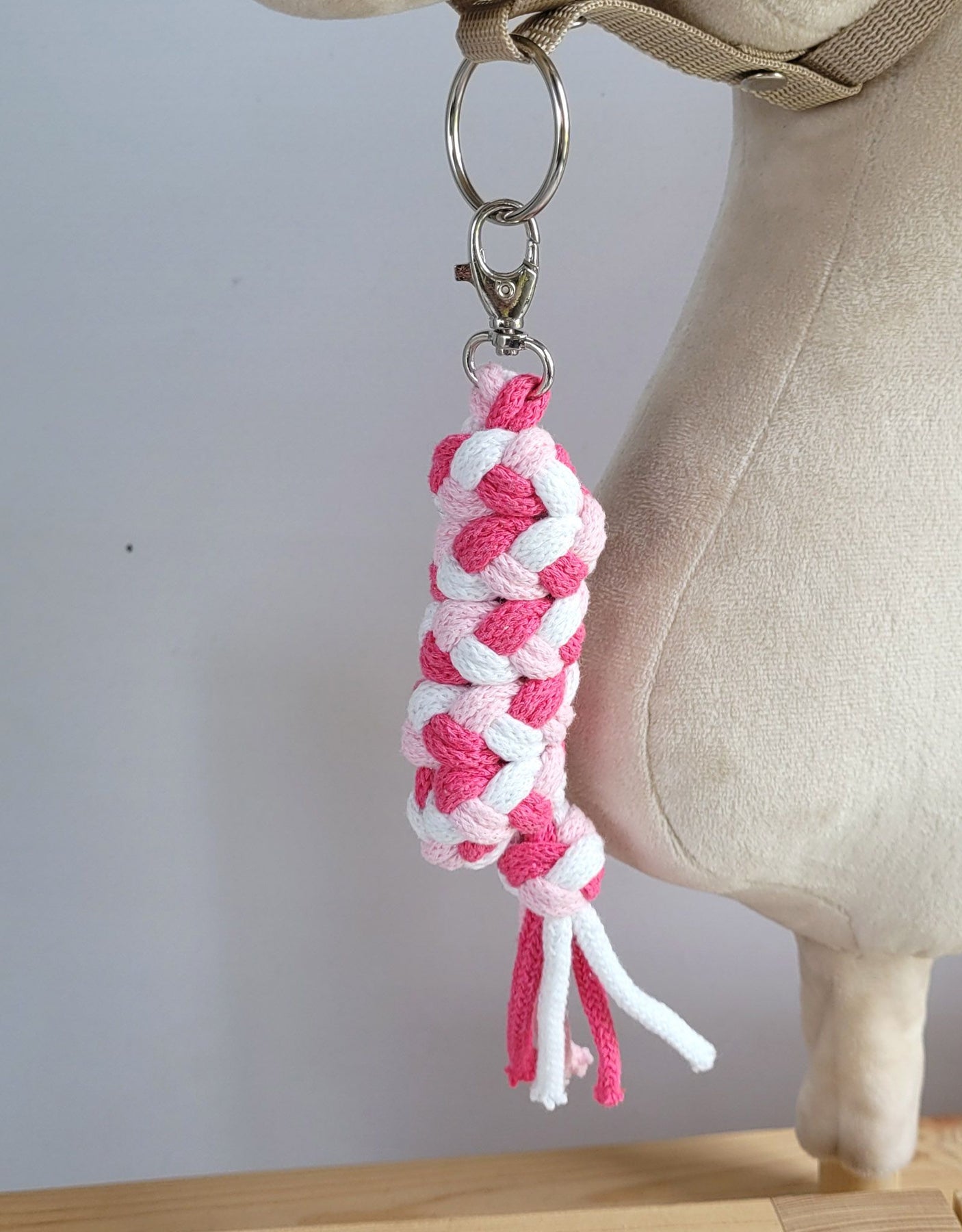 Anbindestrick für Hobbypferd aus Doppel - hellrosa/dunkelrosa/weiß
