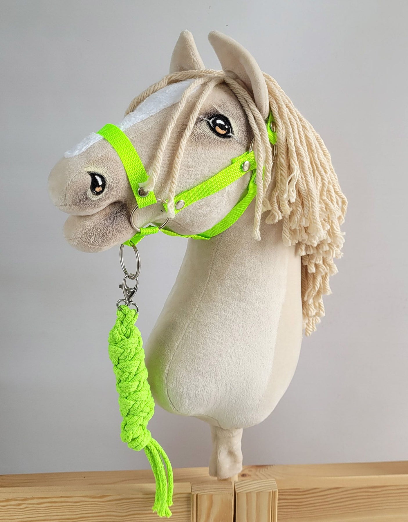 Hochwertige, handgefertigte weiche Kette für Steckenpferd. Die Halskette ist sorgfältig aus starker, doppelt gedrehter Baumwollkordel mit einem Durchmesser von 5 mm geflochten. Die Leine ist angenehm zu tragen, verursacht keine Scheuerstellen und ist antiallergisch. Der Karabiner ist aus silberfarbenem Metall gefertigt.