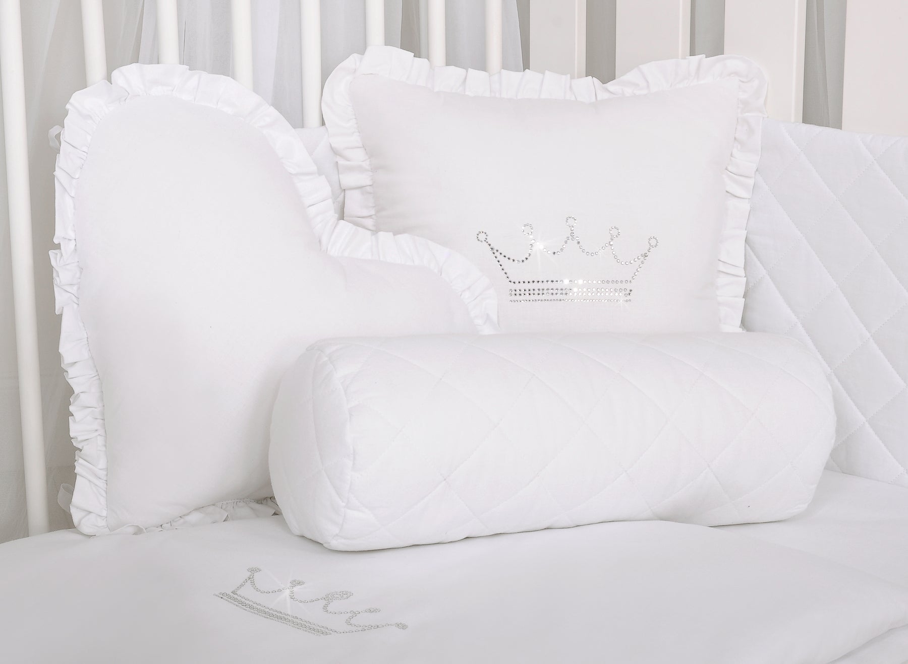 Elegantes Steppkissen. Oberstoff aus zertifizierter Steppbaumwolle (nicht abnehmbar). Die Füllung des Kissens besteht aus Eco Fillball geprüften Silikonkügelchen – „künstlicher Flaum“ für Kissen – die Füllung sorgt für eine gute Ruhe des Babys und eine Luftzirkulation. Es eignet sich hervorragend als Dekoration für das Kinderzimmer. Das Rollkissen ist ein Ganzes ohne abnehmbaren Kissenbezug. Zusammen mit unserer Bettwäsche ist es ein wunderschönes Set.
